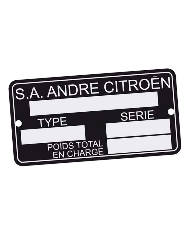 Manufacturer plate 2CV - DS - Traction - HY 43x78mm (NOT IN RELIEF)